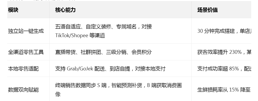 S端整合供应链、技术、数据、金融等资源,为B端经销商提供“批发订货+零售获客+履约服务”的全栈赋能;B端依托S端能力搭建零售触点,服务C端消费者,实现“批零一体、双向赋能”。相比传统分销,该模式使经销商库存周转提升50%、获客成本降低60%,终端复购率提升45%,特别适配泰国及东南亚多渠道零售场景。
